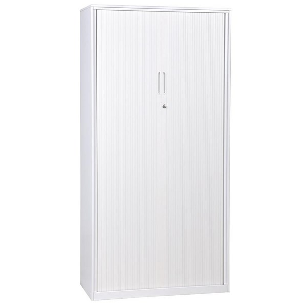 The Proceed 6 Tier Tambour Filing Cabinet is an ideal addition to any office. It is a durable and practical storage solution and features 5 adjustable shelves. It is designed for commercial use and has a sturdy steel construction with a white powder coated finish. The white PVC roller doors open from the centre to the two sides ensuring easy access to the cupboard's contents.