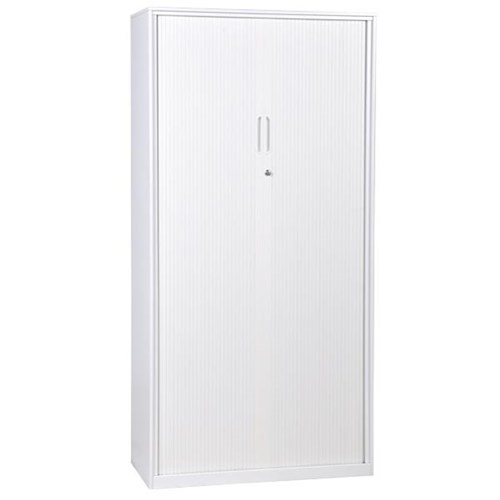 The Proceed 6 Tier Tambour Filing Cabinet is an ideal addition to any office. It is a durable and practical storage solution and features 5 adjustable shelves. It is designed for commercial use and has a sturdy steel construction with a white powder coated finish. The white PVC roller doors open from the centre to the two sides ensuring easy access to the cupboard's contents.