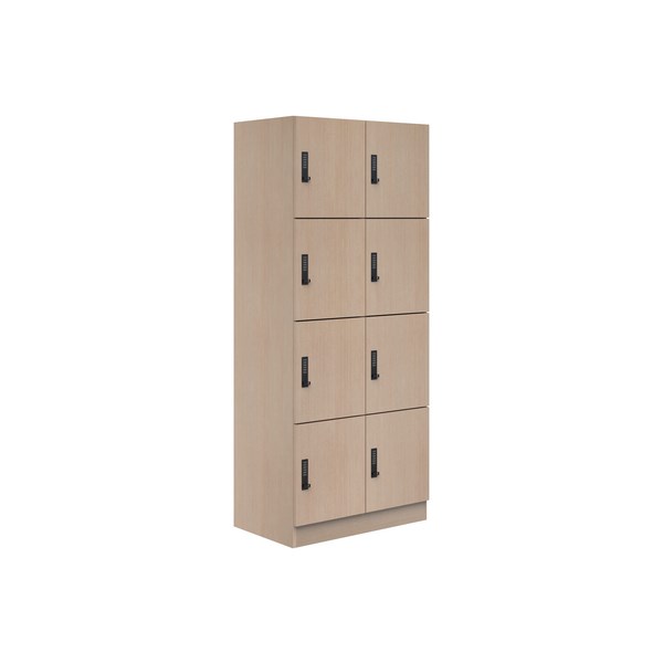 This Mascot Digital Locking 8 Door Locker is excellent for schools, workplaces, and businesses where employees’ and customers’ belongings need to be secured. Each locker features a digital lock to keep items inside safe and no need for a key. Other advantages of digital locking include flush recess mounted, minimal protrusion from door, 5 year battery life, powered key override (if anything ever does fail locker is never stuck closed). Digital locking can also be programmed to Private or Public mode using complimentary Programming key. There are 8 individual lockable lockers so multiple people can use this locker. This locker has a stylish design which can be coordinated with other items in the Mascot furniture range so you can easily create a themed workspace. Ideal for use in offices, schools, gyms, swim centres, and anywhere else where people may need a secure place to store their belongings.