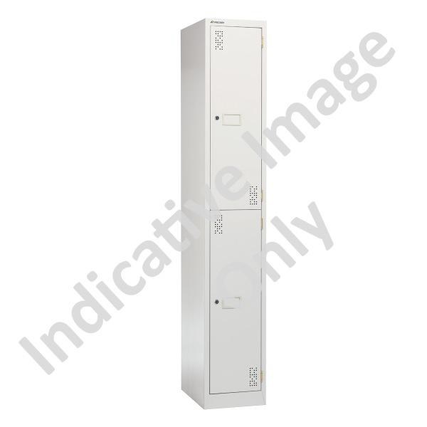 •A satin white 2 tier locker that is ideal for securing all your belongings