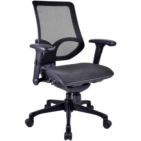 •A height adjustable office chair with a mesh seat and back, designed to keep you cool
