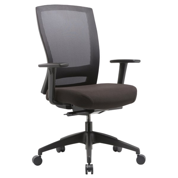 •A mesh back office chair with a synchronised mechanism with black polypropylene upholstery