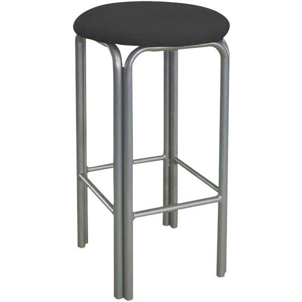 A traditional style bar stool with upholstered seat and silver powdercoated legs. Dimensions: 400mmx760mm (diaxh)