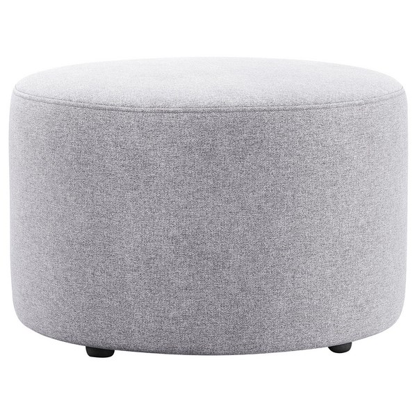 This Round Ottoman is a versatile piece that can be used for a number of settings. It comes with plastic bun feet and is made of high density elephant foam for longevity. The upholstery has Halo treatment for easy spot cleaning.