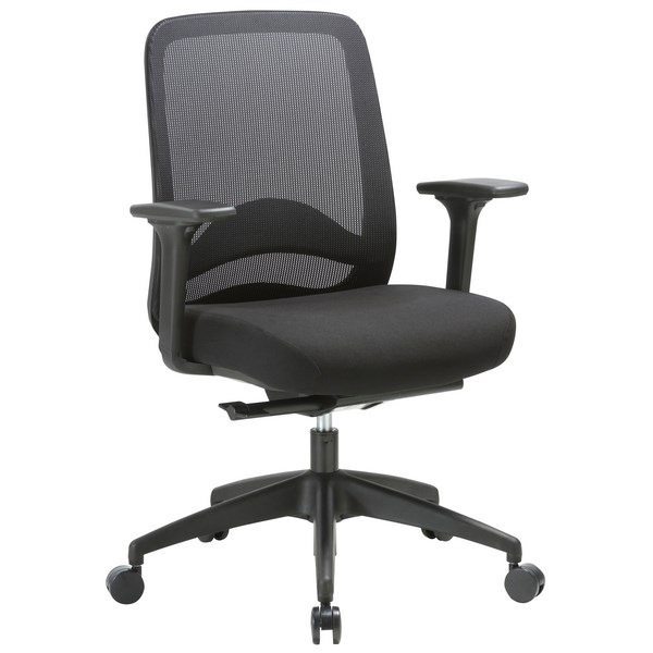 This Buro Vela Mesh Mid Back Task Chair with arms is a stylish, contemporary chair with ergonomic design. The medium backed chair features synchronised backrest and seat angle and 4 position locking adjustment. The self weighting tension adjustment allows automatic adjustment for user comfort and convenience. Chair has a contoured, moulded polyurethane foam seat and a depth adjustable seat slide. Lumbar support is adjustable and mesh back provides ventilation. Great for use in board rooms, offices and working from home set ups.