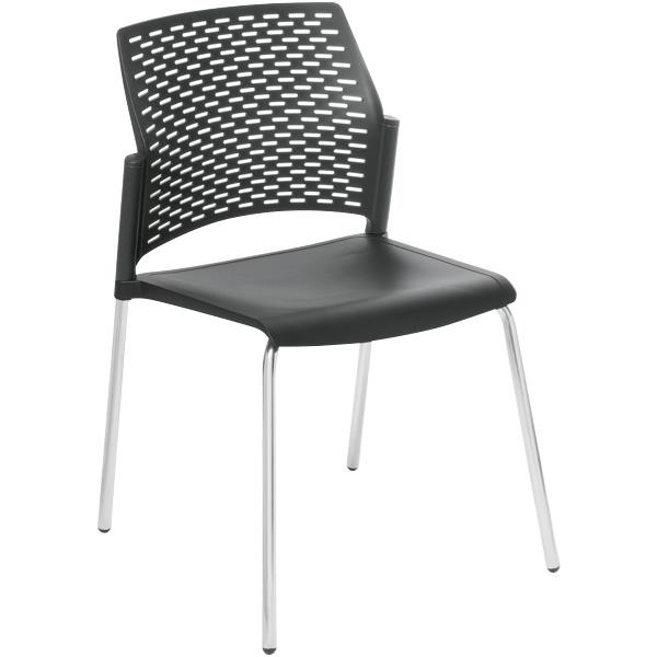 The Punch Cafe Chair is a heavy duty community seating and is ideal for use in cafes, meetings, conferences and more. It features a fashionable perforated backrest and generously-sized polypropylene back and seat. The chair measures 545x825mm and has a stylish chrome frame.