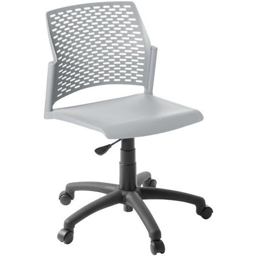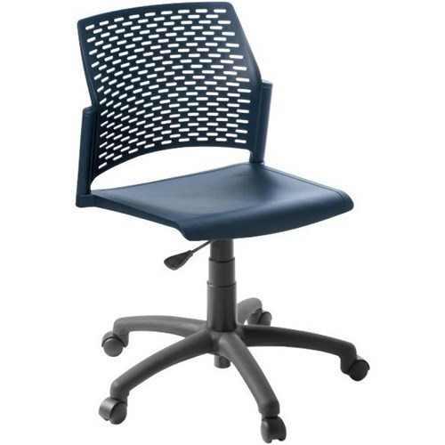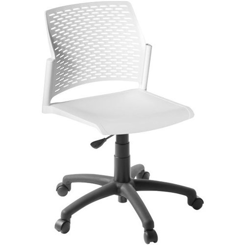 The Punch Swivel Task Chair is a heavy duty community seating solution and is ideal for use in the office, home office, meeting rooms, conferences, and more. It features a fashionable perforated backrest, generously-sized polypropylene back and seat, as well as a 5-star swivel base and gaslift height adjustment. The chair is 620mm wide and has a stylish black frame.
