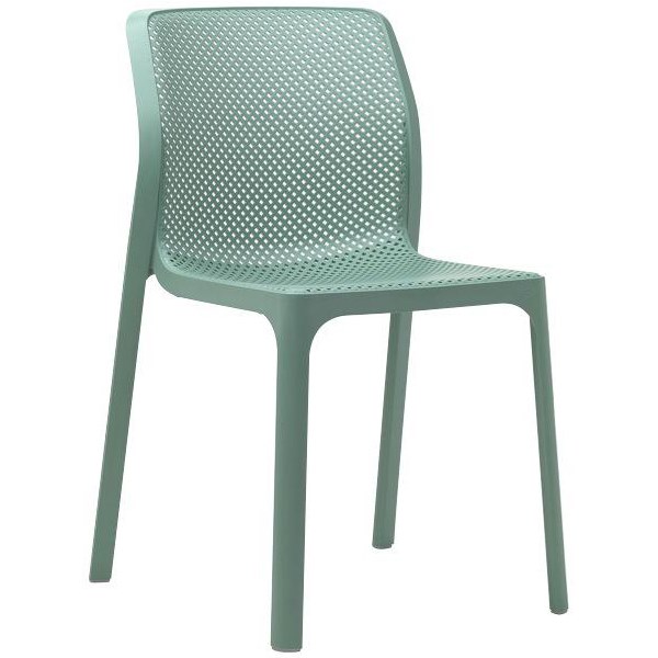 The mint Nardi Bit cafe chair boasts a sculpture-like design with sophisticated contours and visually appealing diamond perforations. Manufactured by intricate 3D modelling and machining, not only is the design stylish but also ergonomically functional. Made from high-grade Polypropylene & Fibreglass Resin that is weather & UV resistant making it resistant to atmospheric pollutants and UV light. This stackable chair has non-slip foot properties and overall measurements of 520x550x840mm (wxdxh), seat height is 470mm and has a weight rating of 200kgs. Designed as an outdoor safe chair, but can also be used indoors.