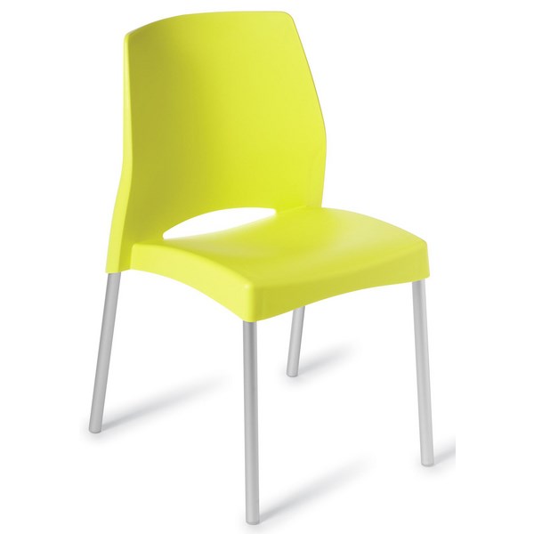 Pop Cafe Chairs are strong, stylish chairs that have a durable UV treated polypropylene shell and anodised aluminium legs. They are suitable for both indoor and outdoor use and are great for restaurants, cafes, cafeterias and staff kitchens. The seat and back are curved and give great user comfort. There is a hole between the back and seat which makes them easy to move and they have a recommended maximum user weight of 160kg.