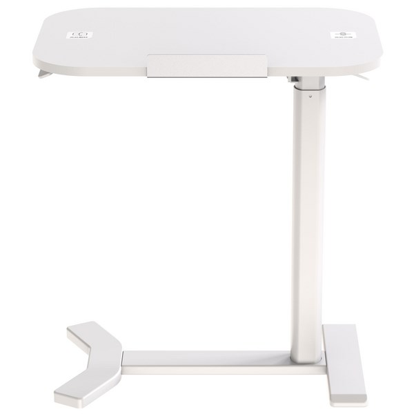 This table provides a reliable and convenient desktop surface for anyone to use near furniture like beds, couches, and recliners. The C shaped base allows for closer access from a chair or bed. The adjustable table with wheels rolls smoothly throughout the house, making it a unique and adaptable furniture design suitable for any environment or task.