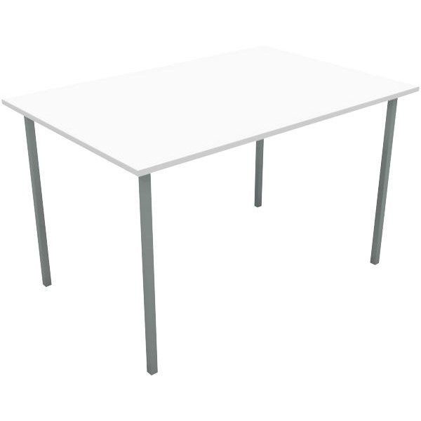 Canteen Table 1200x600mm 25mm Square Silver Legs Snowdrift White