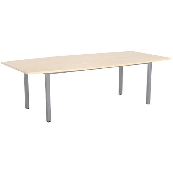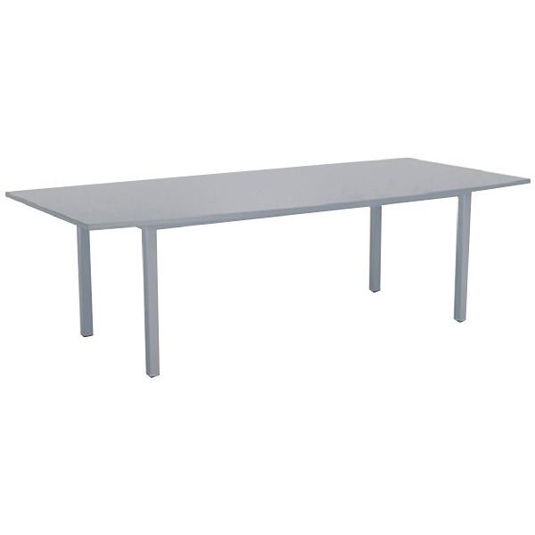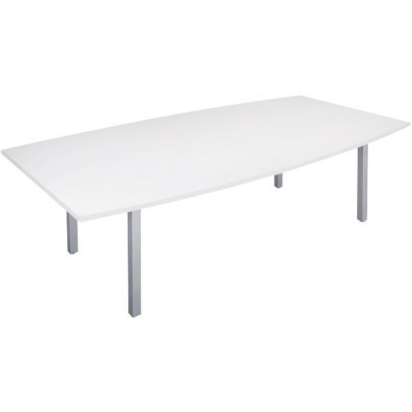 This Cubit Boardroom Table has a unique bow-shaped top. The top is 25mm MDF with a Melteca finish and solid 2mm PVC edging. The sturdy steel legs are square 50mm tubes with a durable powder coated finish. It is ideal for boardrooms and meeting rooms and the shape allows all users a view of each other due to the tapered ends.