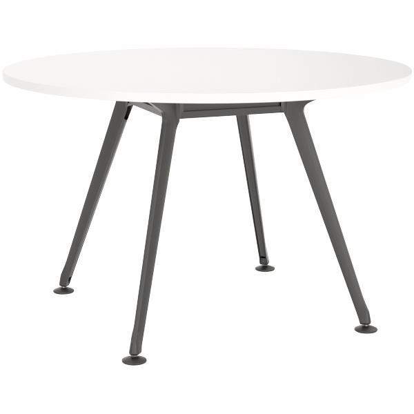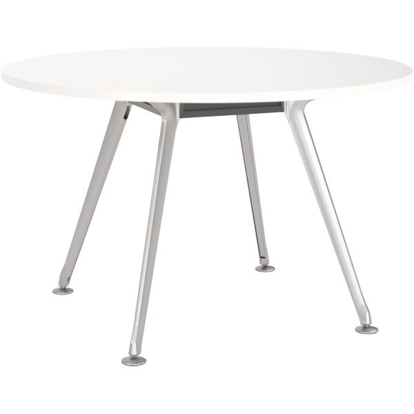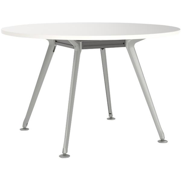 This Galaxy Boardroom Table features a round work surface and is ideal for use at the office, meeting rooms, boardrooms, presentations, collaboration areas and more. Its durable, lightweight aluminium frame makes it easy to move around and white top will suit most colour schemes.