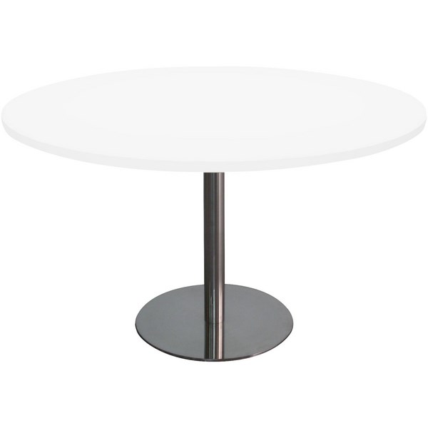 This Round Meeting Table is excellent for offices, breakout spaces, meeting rooms and cafeterias. The table has a 25mm solid top finished in Melteca Snow Drift White. The stable disc base maximises leg room for flexible seating arrangements.