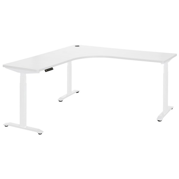 This Amplify Electric Workstation is a corner desk with a great practical design. Its height adjustable feature allow users to switch between sitting and standing for comfort. With a built-in cable port, wires from electric devices can be kept safe and tidy. The desk top has a melamine finish with ABS edging which is durable and easy to clean. Built in levelling glides are installed to keep the desk steady and prevent wobble.