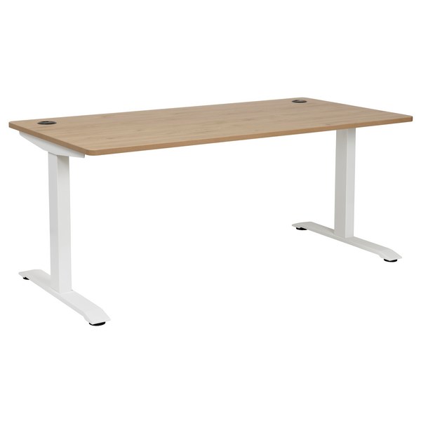 Enjoy a practical modern workstation with this Amplify Straight Desk. It is made up of a melamine top with ABS edging built on a solid steel frame. There are two built in cable ports to keep your wires tidy and out of harm's way. The desk has height adjustable feet to ensure stability on all types of floor surfaces and prevent wobbling.