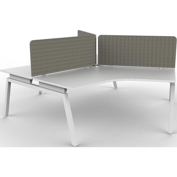 This Balance Angle 3 Way Workstation Pod features a shared sub frame and is designed for 3 users. The frame is made from sturdy steel and has a black powder coated finish. The wooden top is 25mm thick and has a Melteca finish with matching 2mm solid PVC edging.
