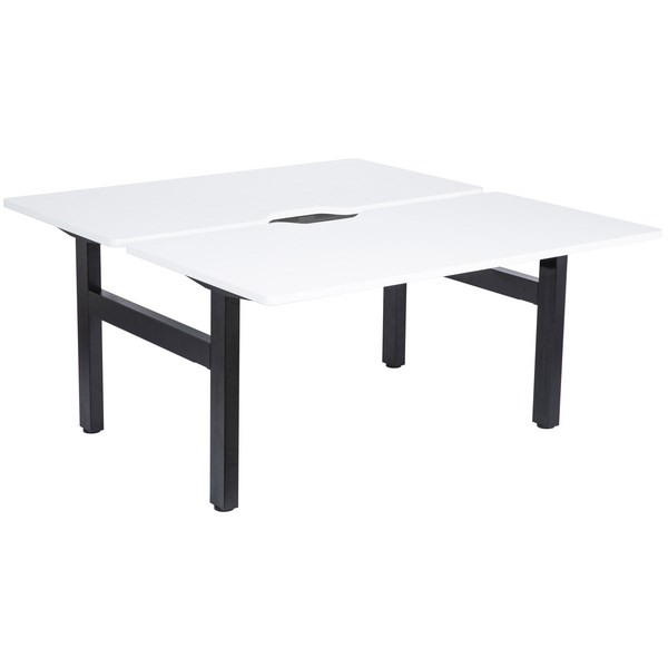 • Fixed height, back-to-back desk with one connected frame and two scallop worktops