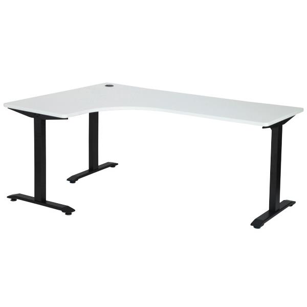 Emerge Single User Workstations are perfect if you require slightly more desk space than a regular straight desk. The corner shape allows you to have access to all items on your desk but still give extra surface space. It has a durable black powder coated steel frame which holds a 25mm melamine worktop. This desk has a built-in cable port for easy cable management.