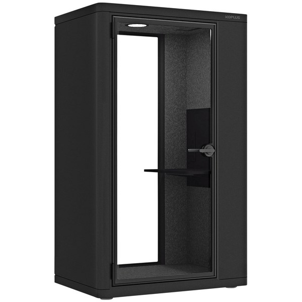This Koplus Milli Sit Booth is a compact but highly effective fully enclosed workspace for focused work. The booth is bigger than a phone booth and can fit a sofa chair (not included), so people can work comfortably without interruptions for a long time. The booth features a motion sensor that turns on the booth lighting upon entry, providing a smooth transition experience between different spaces. The light then automatically turns off when not in use to conserve energy. The booth is also equipped with constant air circulation and multiple power outlets for comfort and convenience. Milli booths are equipped with levelling feet that can be lowered to access the rollers for horizontal movement.