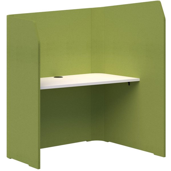 This Sonic Focus Pod is lightweight and movable, designed to give you privacy and keep you focused. It is engineered to fit dual 24 inch monitors. The high return wall shields users from distractions, while the angled desktop enhances privacy and acoustic performance. Great for offices, coworking spaces, and home setups.