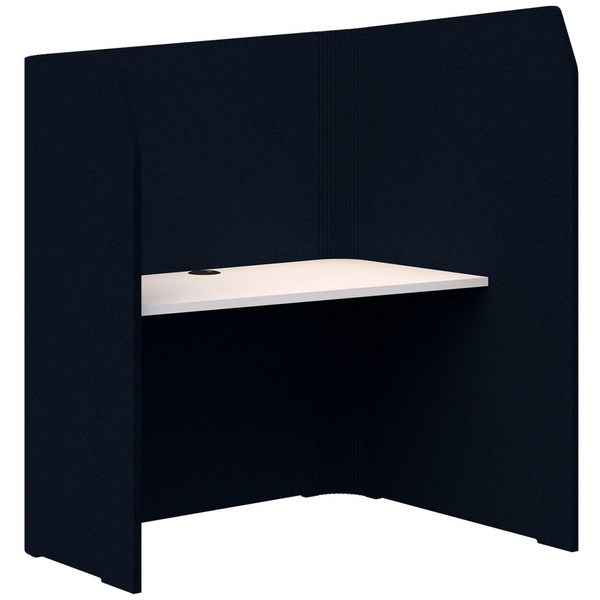 This Sonic Focus Pod is lightweight and movable, designed to give you privacy and keep you focused. It is engineered to fit dual 24 inch monitors. The high return wall shields users from distractions, while the angled desktop enhances privacy and acoustic performance. Great for offices, coworking spaces, and home setups.