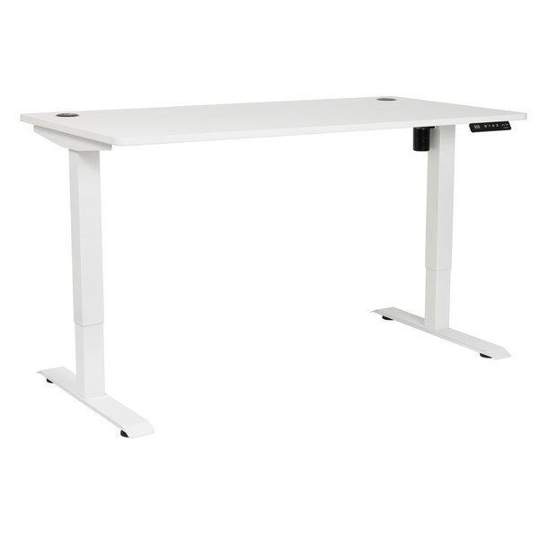 Enjoy a practical modern workstation with this Amplify Single Motor Height Adjustable Desk. It allows you to switch between sitting and standing providing ergonomic comfort while you work. For convenience there is a USB/USB C port for charging devices and two built in cable ports to keep your wires tidy and out of harm's way. The desk has a melamine top with ABS edging built on a solid steel frame to ensure durability and long lasting use.