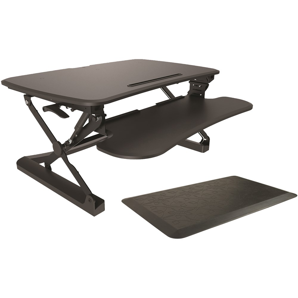 This Black Arise Single Monitor Deskalator is designed to sit on your desk and allows you to change your posture, to sit or stand, through the day. It adjusts smoothly and easily, straight up and down, via two activation paddles and features a scissor structure that has a gas spring which allows for supported height adjustment. The wide adjustment options suit all users of varying heights.