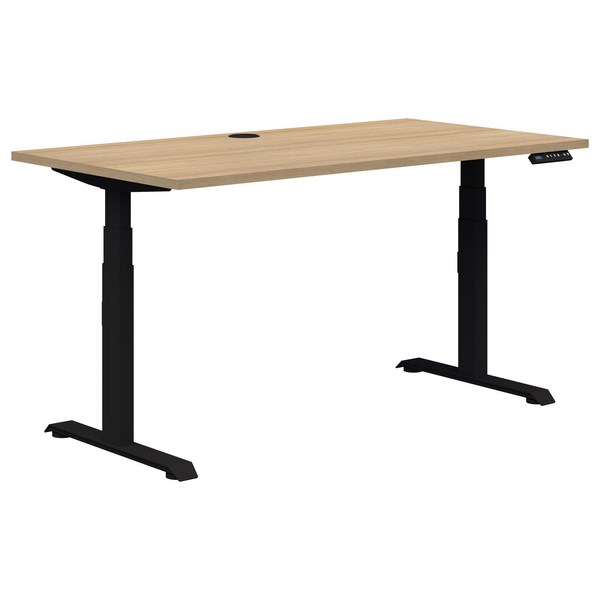 • Single user, electric height adjustable desk with classic oak desk top and sturdy powder coated steel black frame