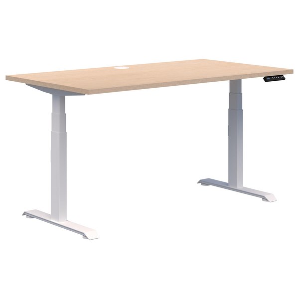 • Single user, electric height adjustable desk with refined oak desk top and sturdy powder coated steel white frame