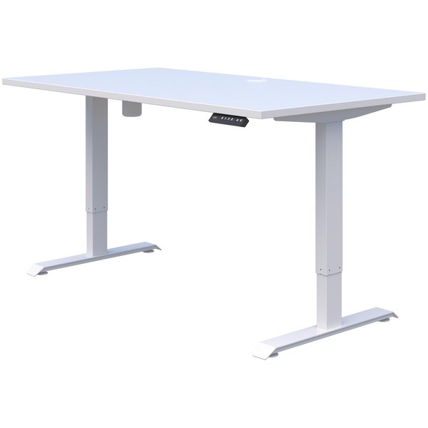 Duo II Height Adjustable Desks are electrically controlled with a programmable controller with an LCD display for convenience. It has a sturdy white powder coated steel frame and a durable 25mm Melteca top with 2mm PVC edging in a Snowdrift white colour. This handy desk allows users to change from sitting to standing quickly and easily and is ideal for office use.