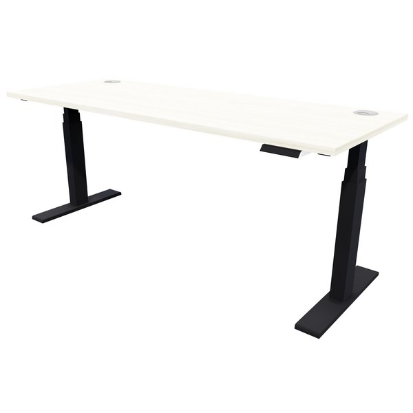 Add a modern stylish piece of furniture to your space with this Rise Electric Height Adjustable Desk. It gives you the flexibility to sit or stand while you work providing ergonomic comfort and preventing unnecessary injuries. For convenience, there are two cable ports to keep your cords tidy and out of harm's way. The desk has a melamine top with a rigid matching PVC trim for bump protection. It's built on a solid steel frame structure for stability and long lasting use.