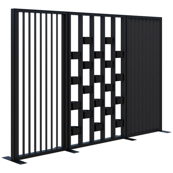 This stylish Connect Freestanding Angled Fin/Plant Wall Room Divider segregates rooms while adding an attractive feature within the office, work, school, or home environment. This modern room divider allows partial visibility and light transfer, and the freestanding feet allow the screen to be placed anywhere at any time. The plant wall module is supplied with 20 black 16cm pots for adding live or artificial plants to bring some greenery into your workspace, office, or waiting room. The frame, endcaps and feet are made from durable powder-coated aluminium, and the fins are manufactured from 25mm Melamine. In today’s workspaces, many businesses are looking for ways to create different zones in open plan areas without building permanent walls. The Connect Zone Divider system solves this problem, with its multi-purpose design offering the solution to a host of workspace needs all in one system. A simple kit of parts allows you to reconfigure screens as your needs change.