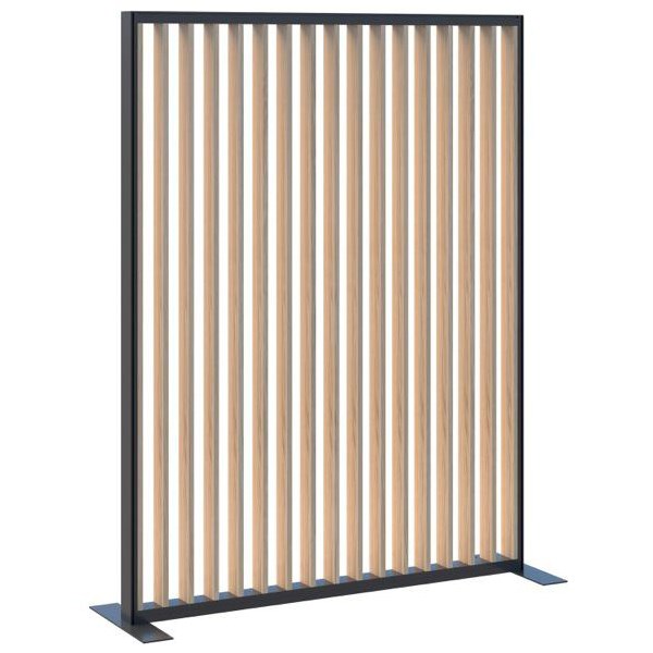 This stylish Connect Freestanding Straight Fin Room Divider segregates rooms while adding an attractive feature within the office, work, school or home environment. The classic oak style with black frame allows partial visibility and light transfer, and the freestanding feet allow these screens to be placed anywhere at any time. The frame, endcaps and feet are made from durable powder-coated aluminium, and the fins are manufactured from 25mm melteca (Melamine).