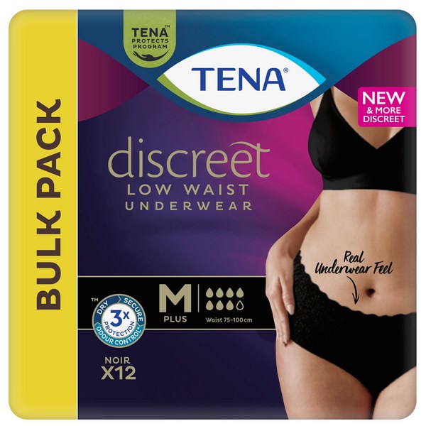 TENA Discreet Plus Low Waist Noir Continence Pants Women's Medium, Carton of 2 Packs of 12 Black