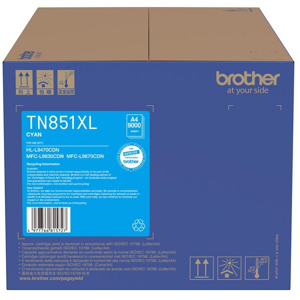 This Brother TN851XLC Cyan Laser Toner Cartridge is a high capacity cartridge that has a print yield of approximately 9000 pages.