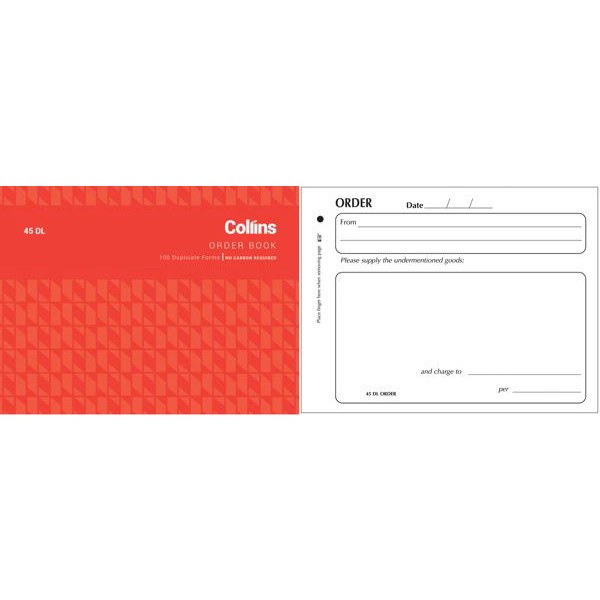 This self carbonating Collins order book has a distinctive red cover. Keep an accurate record for future references on all incoming orders and their source. Books have six figure numbering.