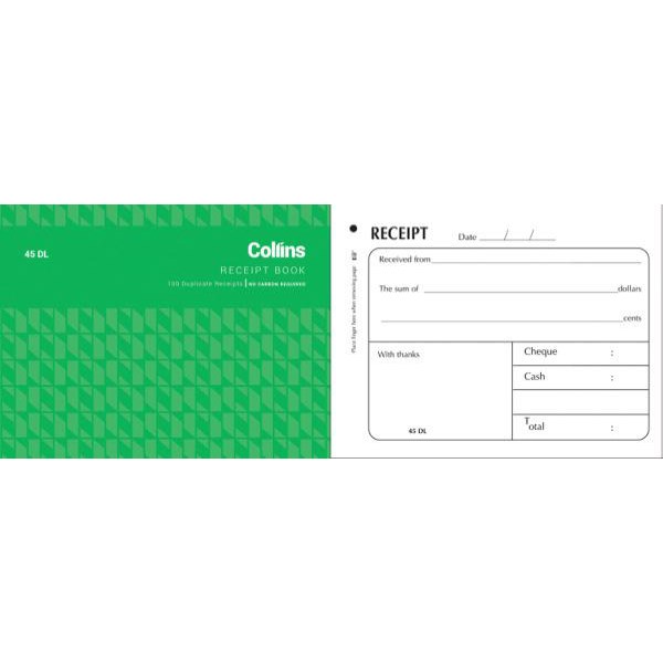 This self carbonating cash receipt book from Collins is made in NZ. Is a duplicate book so give one copy to your customer and keep one copy for your records. Six figure numbering.