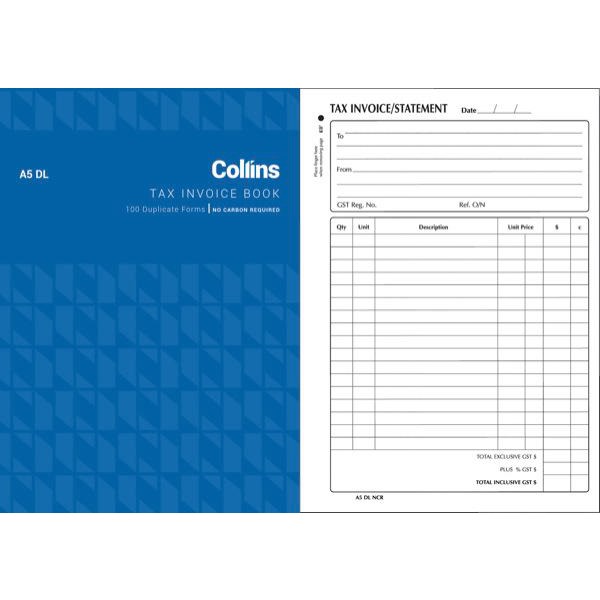 Collins A5DL Tax Invoice Book FSC NCR Duplicate Set of 100