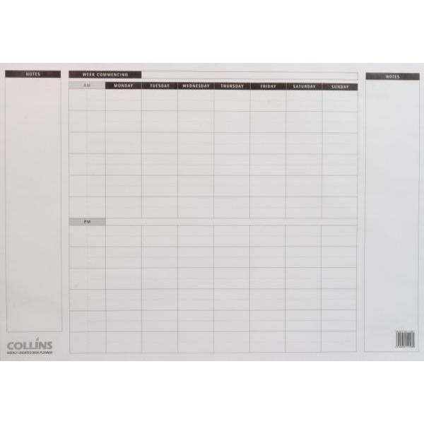 This Pre-printed 20 sheet refill pad is for the Collins A2 Executive Desk Pad Holder and offers a full week of labelled days as well as sections for AM and PM.