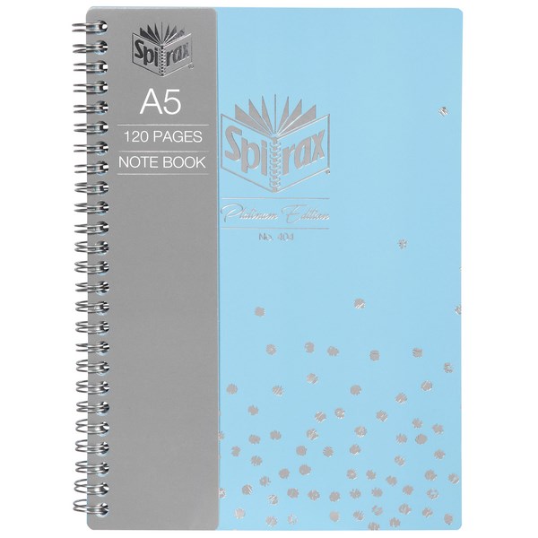 The Spirax Platinum A5 Spiral Notebook is ideal for writing down ideas or to-do lists, and can be used for the office, at school or home. It has shiny silver spiral binding and cover features, and a soft touch cover, giving it a more elegant look and feel. Inside you will find 120 pages of high quality 90gsm paper.