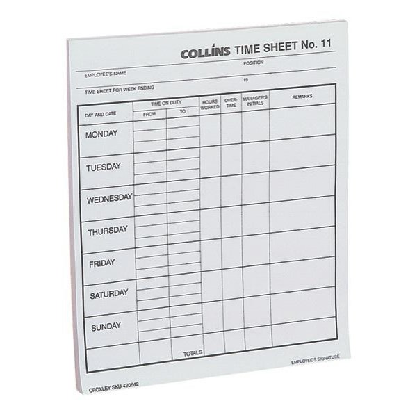 This No.11 Time Sheet Pad offers an effective way to record the time worked by employees. 100 Pages per pad with one page for each employee per week.