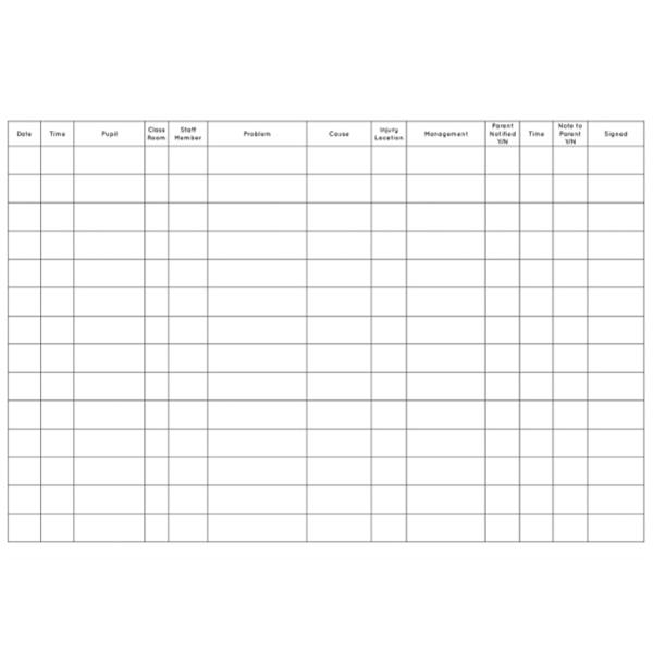 This is a pre-printed log book to record Sick Bay activity. The pages have been set out in an easy-to-use, column format with plenty of room to record all necessary details for sickness or injury. The wire bound cover is made from durable polypropylene for extended life.