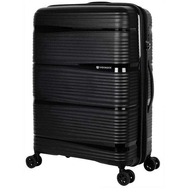 The Voyager Berlin V7400 Trolley Suitcase is a sturdy and stylish suitcase perfect for frequent travellers. Built from impact resistant polypropylene, the travel suitcase offers a high level of mobility with a 3-stage aluminium telescopic locking handle and dual 360-degree multi-directional spinner wheels. The suitcase has a split body design, with two separate packing compartments to organise your belongings. One compartment has a zipped mesh panel divider, the other has clothing tie down straps. The suitcase also features a fixed TSA combination lock to secure and protect your contents, an expander zip for extra storage space, and an internal zippered side pocket for packing smaller items.