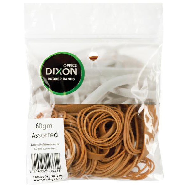 Dixon Rubber Bands are a handy accessory to have around the home or workplace and can be used for a variety of different uses. These premium quality rubber bands are produced to strict specifications and are constructed to have no joins that add extra strength. This pack contains an assortment of sizes, so they’re perfect for bundling projects of any size. Supplied in a handy resealable bag for easy storage.