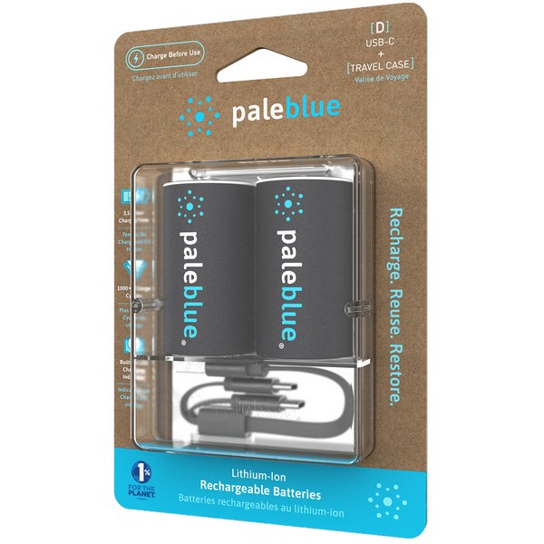 Pale Blue Micro USB Rechargeable Batteries use lithium technology meaning they are fully charged after only two hours. A single one can replace 1000+ alkaline disposable batteries. They come with a micro USB-C port so you can charge two batteries at once, and they have a handy LED indicator to let you know when they are fully charged. These lithium batteries won't discharge when not in use and have on-board smart technology that provides safe charging, so your electronic devices will be safe.