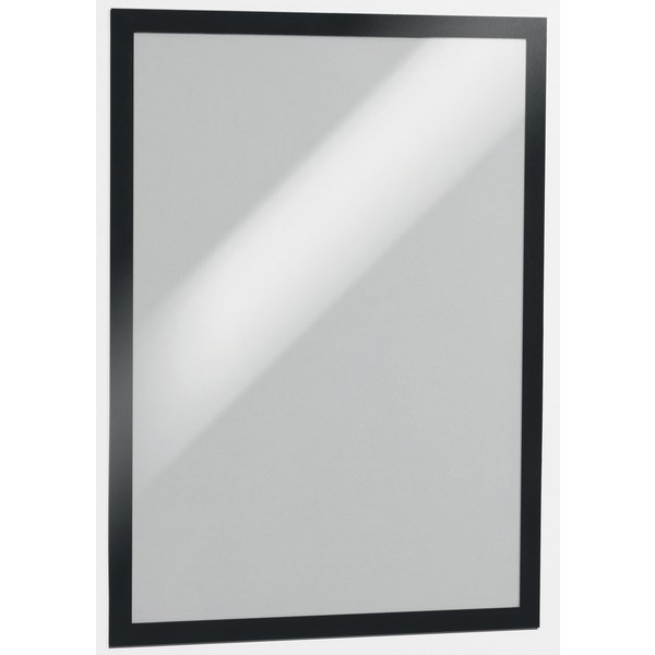 Display and present your documents professionally with this Durable Duraframe presentation frame. Documents can easily be inserted and removed using the fold-back magnetic frame. The presentation frame is a standard A3 size, comes in a pack of 2 and can be used in both portrait and landscape formats. It features a self-adhesive sticker on the back allowing you to stick onto smooth and solid surfaces such as glass. When applied to glass, the information can be read from both sides.