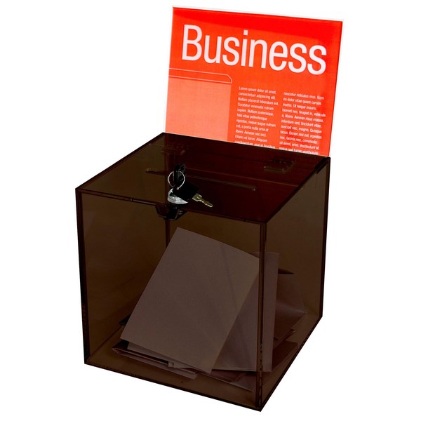 Ideal for competitions, storage of entries, customer and staff feedback etc. A sturdy construction with a lock and a removable header card.
