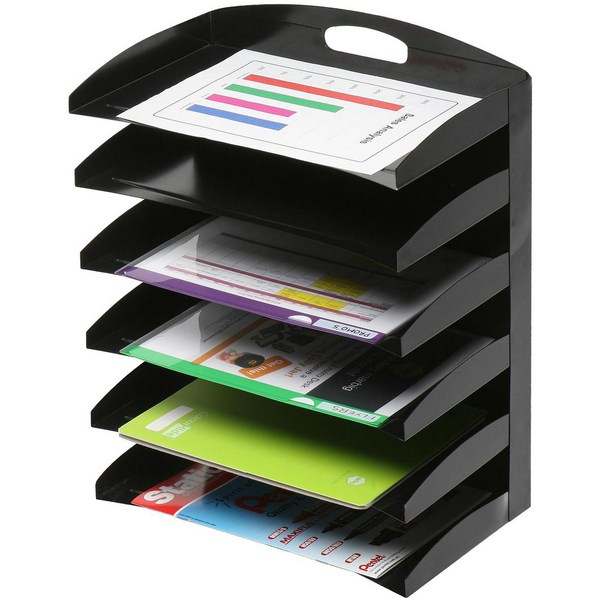 With a modern curved design, this metal Marbig Desk Organiser has 6 tiers and is ideal for paper and document storage. It easily fits both A4 and Foolscap sized paper and is made to endure the toughest working environments, factories and workshops. The stylish design would look good in your home office too.