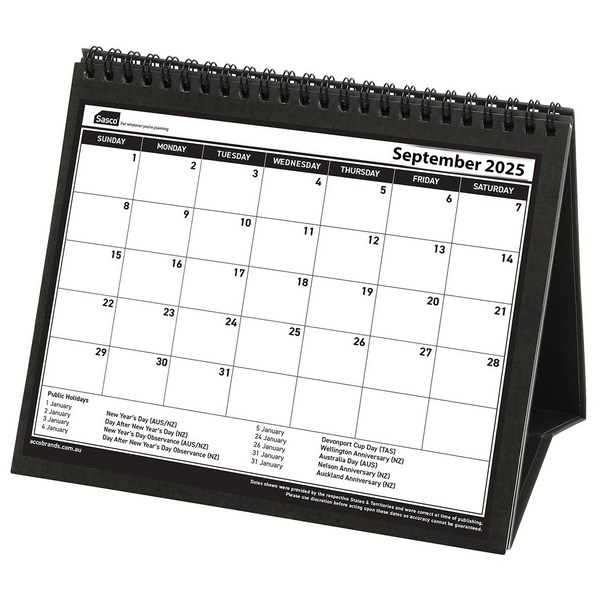 Sasco Desk Tent Calendar 1 Month To View 2026 Black/White 2660679 Unit: Each